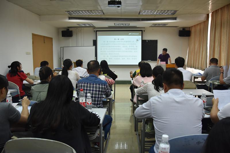 黄瑞诚首先对《taptap点点体育成人教育学生档案管理办法》进行解读,逐一讲解了学生档案的收集与整理、归档与移交及使用与提档要求等内容,并着重强调学生档案管理的规范性及档案管理人员须具备的基本素质。成教院黄师阳老师结合《关于规范教学点档案管理的细则》对学生档案特别是2019届毕业生档案的相关要求进行了详细具体的培训。