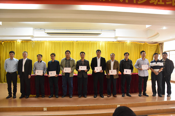 结业典礼上,学员代表贺州市中医医院院长吴家恩进行了发言。与会领导为部分学员代表颁发了结业证书。