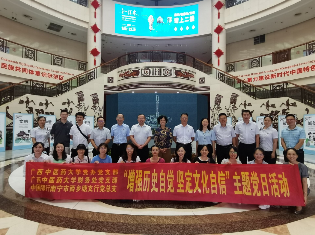 为弘扬中华优秀传统文化,激发党员爱国热情,9月23日下午,党办党支部、财务处党支部联合中国银行南宁市西乡塘支行党总支在广西民族博物馆开展“增强历史自觉 坚定文化自信”主题党日活动。学校原党委副书记、纪委书记杨连招以普通党员身份参加了活动。