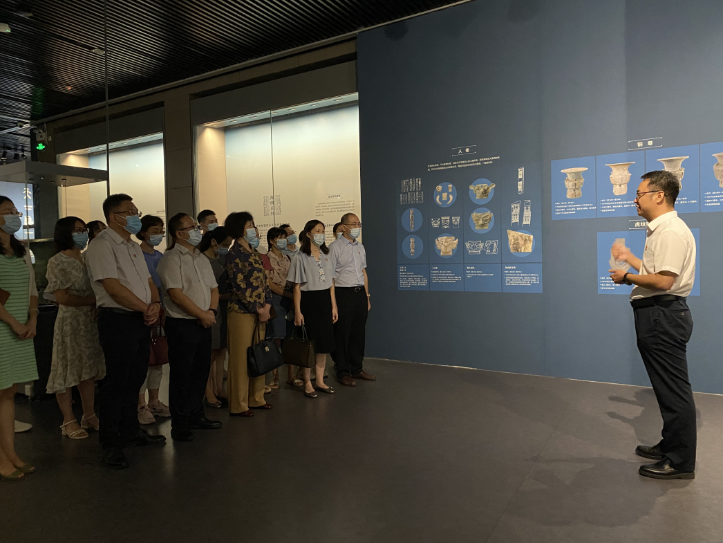 在参观完“共饮一江水——长江流域青铜文明特展”后,学校党委办公室主任、机关党委书记徐方明作总结讲话。他强调,习近平总书记在庆祝中国共产党成立95周年大会上的讲话中指出,“文化自信,是更基础、更广泛、更深厚的自信”,文化自信成为继道路自信、理论自信和制度自信之后,中国特色社会主义的“第四个自信”,希望各位党员要善于从中华优秀传统文化中汲取营养和智慧,进一步增强历史自觉,坚定文化自信,立足平凡岗位,为党的事业和学校高质量发展贡献应有的力量。