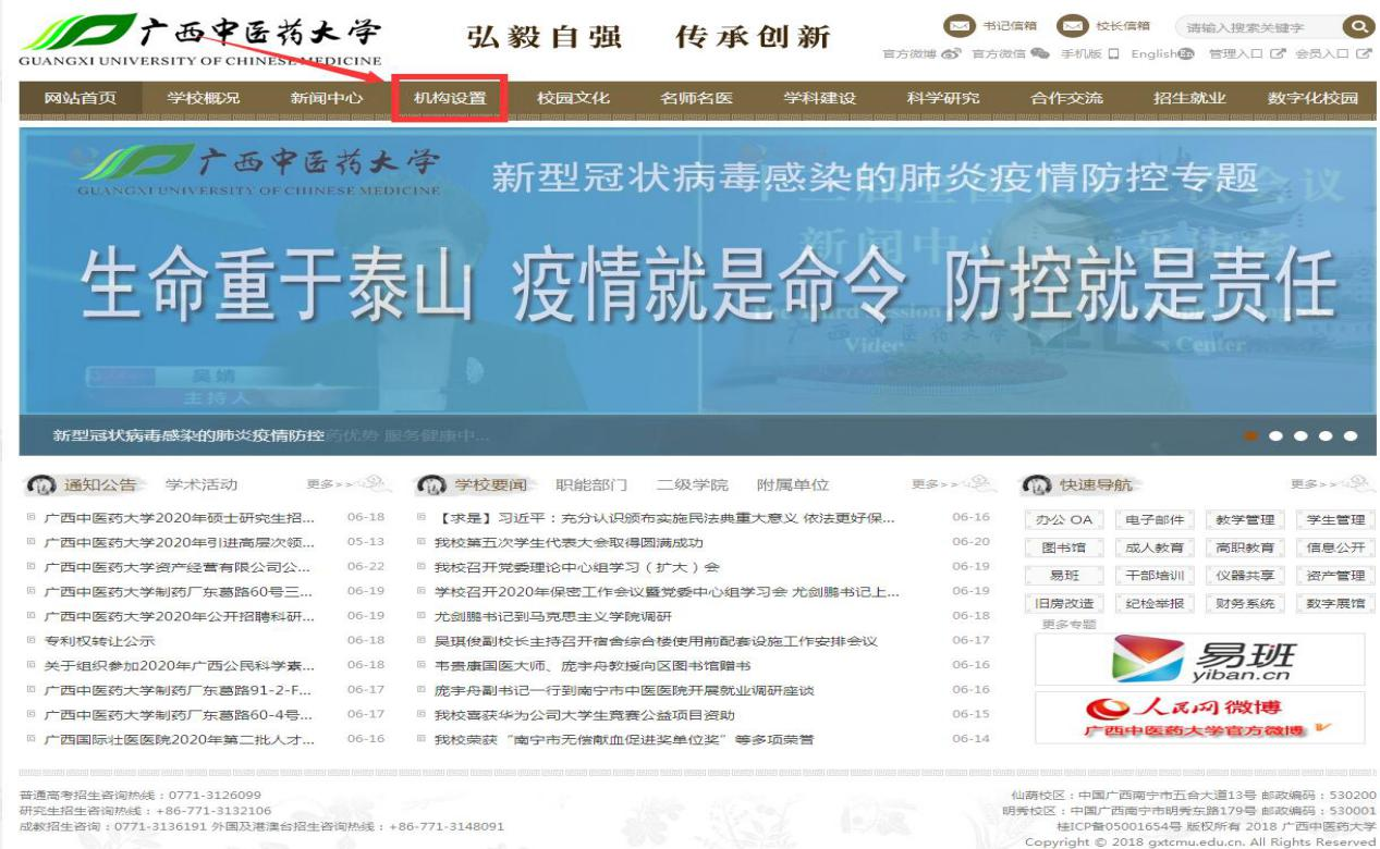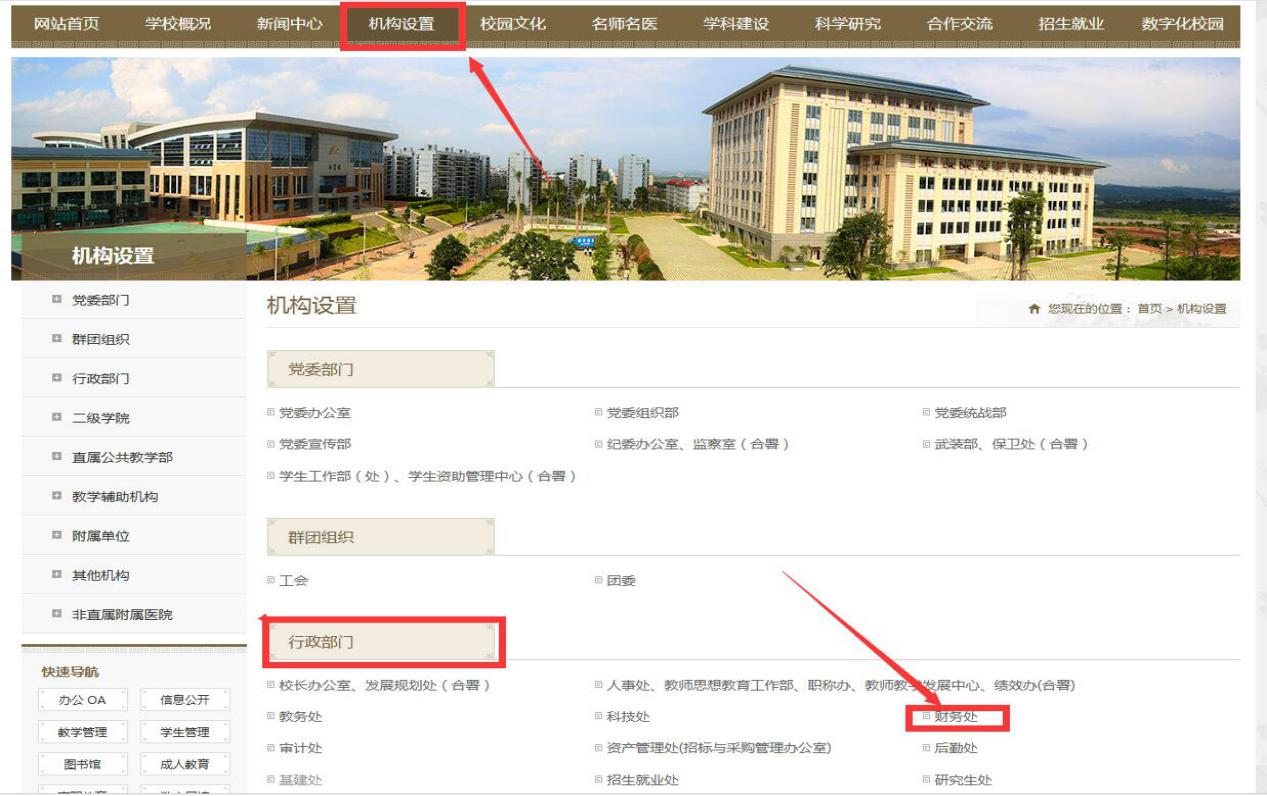 2.在学校官网选择机构设置-行政部门-财务处,进入页面如下: