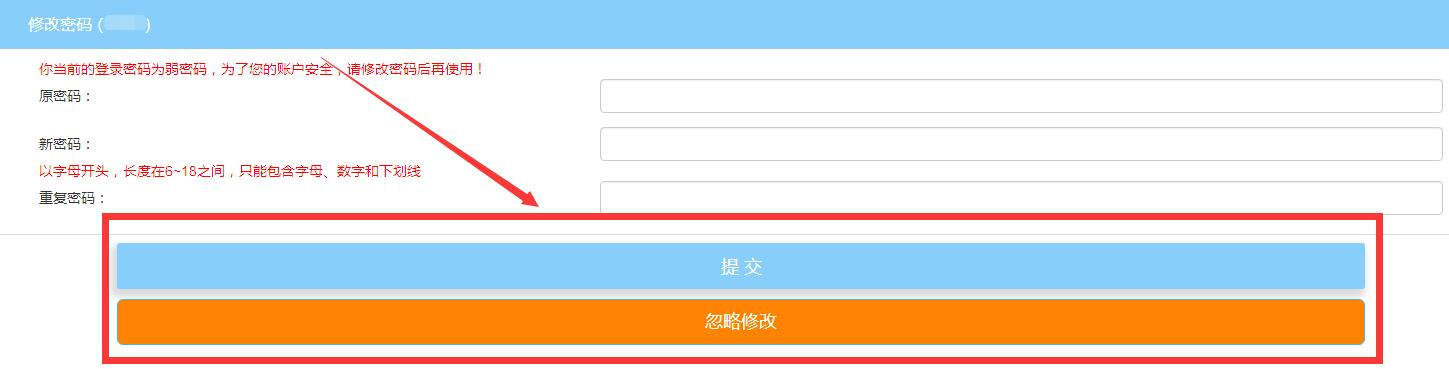 4.登录智慧缴费平台后,可以选择修改登录密码,或者忽略修改,如下图:
