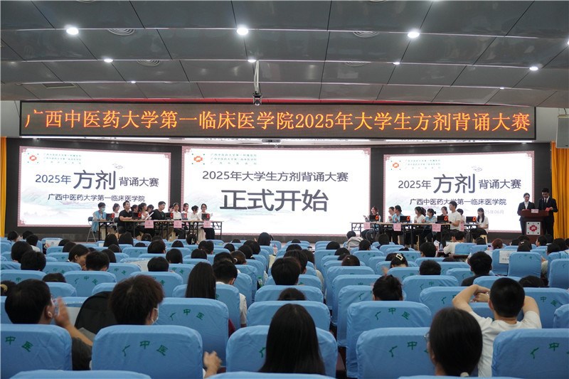 近日,第一临床医学院2025年方剂背诵大赛在医院住院综合楼5楼多功能学术厅举行。本次大赛邀请基础医学院方剂教研室孔鹏云老师任评委,各班辅导员及2022级中医学相关专业共400多名学生参与。