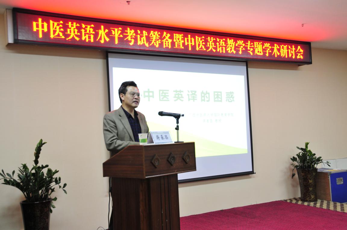 中华中医药学会翻译分会秘书长、上海中医药大学外语中心主任丁年青教授作主旨发言