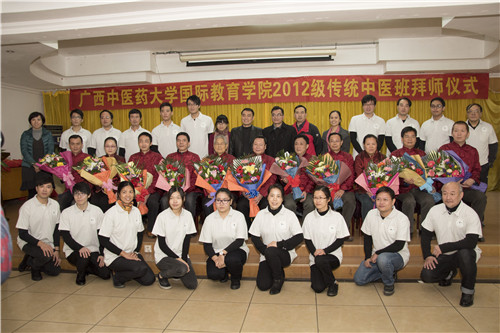 2015年12月9日下午3点,国际教育学院2012级传统中医班拜师仪式于在明秀校区大学生俱乐部隆重举行。出席此次拜师仪式有国际教育学院副院长韦文朗、教务处副处长韦维、11位“传统医药师承”指导教授、26位来自香港地区和越南、马来西亚等国家的师承学生以及国际教育学院的全体师生。