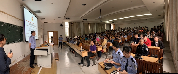五一假期刚结束,国际教育学院为了增强2018级新生法律法规意识,提高安全防范意识,特邀请南宁市公安局出入境管理分局、南宁市公安局西乡塘区分局和点点体育所在辖区派出所的警官们来校进行了一次安全教育宣讲活动,内容涉及留学生们在华生活息息相关的相关法律法规知识和安全防范等。活动由国际教育学院韦文朗副院长主持,学校保卫处陆会林副处长及国教院学生工作办公室的老师们出席了此次安全教育宣讲活动。