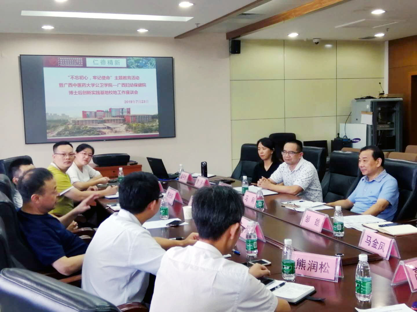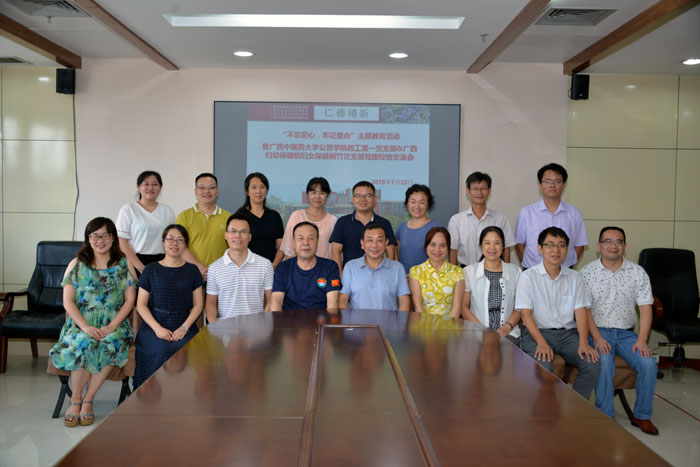 为深入贯彻落实习近平总书记“不忘初心、牢记使命”主题教育的精神, 2019年7月23日,公共卫生与管理学院教工第一党支部与妇幼保健院妇女保健厢竹党支部在广西妇幼保健院厢竹院区举行了“不忘初心、牢记使命”主题教育。