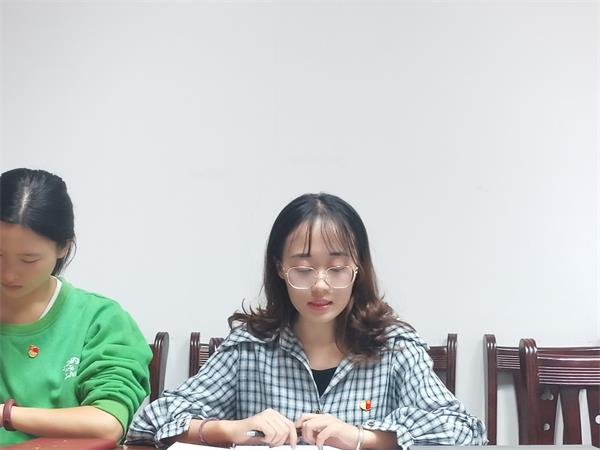 会议第二项,17级公共事业管理预备党员牛璇对学习黄文秀同志先进事迹进行了心得体会分享。随后,支部书记宋南进行了点评,要求学生党员不断向榜样学习,做好先锋模范带头作用,为共圆民族复兴梦奉献自己的一份力量。