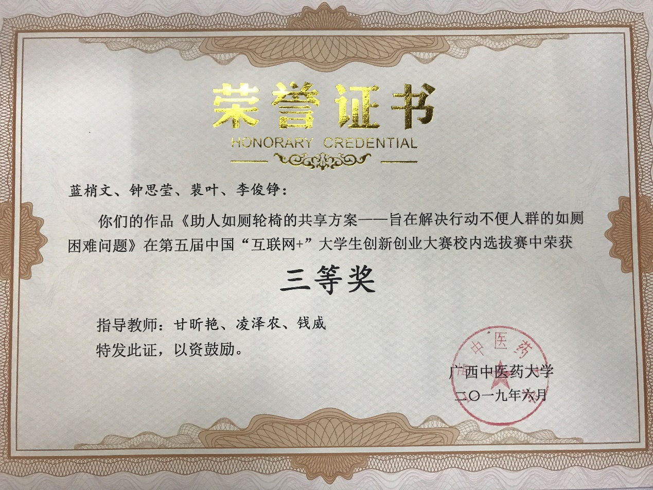 我院学子荣获第五届中国“互联网+”大学生创新创业大赛三等奖