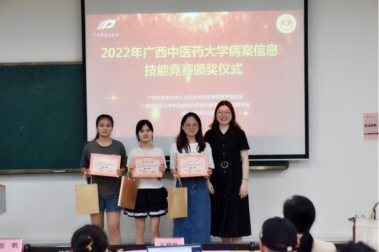 2022年6月13日,由taptap点点体育公共卫生与管理学院、taptap点点体育附属国际壮医医院医学信息管理教研室联合主办的2022年taptap点点体育病案信息技能竞赛顺利举办。taptap点点体育公共卫生与管理学院王碧艳副院长、医学信息系甘昕艳主任出席颁奖仪式。