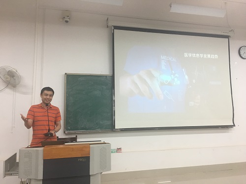 现代教育技术与信息中心罗俊副主任向学生介绍医学信息学科技前沿