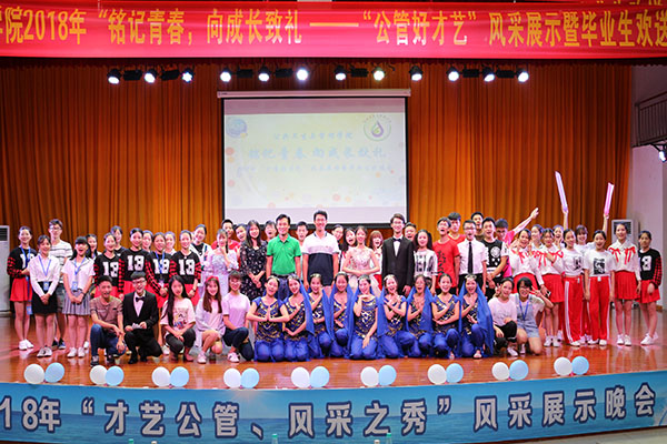 我院于2018年6月10日晚19:00-21:30在仙葫校区小礼堂举办了以“铭记青春,向成长致礼”为主题的“公管好才艺”风采展示暨毕业生欢送晚会,校团委王雄将老师、我院学生工作办公室主任宋南老师、团委书记鲁蕴律老师、医科大信管学院代表及点点体育各兄弟学院代表出席了此次晚会,我院全体同学热烈响应,积极参与。