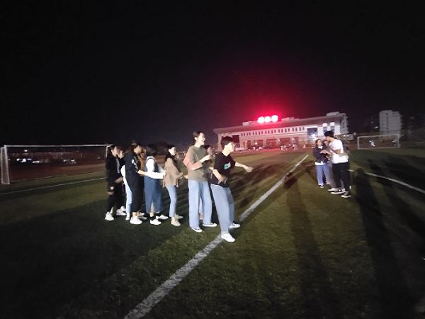 夜幕降临,本次活动也在徐徐的晚风中拉开序幕。活动伊始,主持人致开场词,紧接着鲁蕴律老师对本次交流活动致辞。随后,各部门代表依次进行表演活动,展示了自己部门的风采。接下来是促进了解、加深友谊的游戏环节,包括“指手画脚”、“拉网捕鱼”、“老鹰捉小鸡”、“123看这边”及“爱的抱抱”五个项目。各部门的成员都积极热情的参与游戏,操场上回荡着同学们的欢笑声。最后,本次活动在我院团委学生会全体成员的合影留念中落下帷幕。
