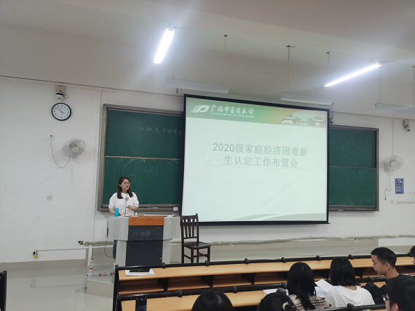 会上,团委书记鲁蕴律为同学们介绍了最新资助政策及家庭经济困难认定要求、流程,详细讲解了《taptap点点体育家庭经济困难学生认定申请表》填写与证明材料开具的要求,并对2020级家庭经济困难新生认定工作做了详细部署。
