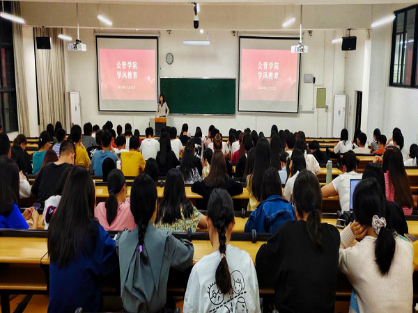 2020年11月22日20:00,鲁蕴律在仙葫校区教学楼1-107进行了学风教育。参与本次大会的有2017级应用心理学班、2018级预防医学班、2019级公共事业管理班的全体同学,其他因上课和实习在外的专业,均以网络形式同时传达。