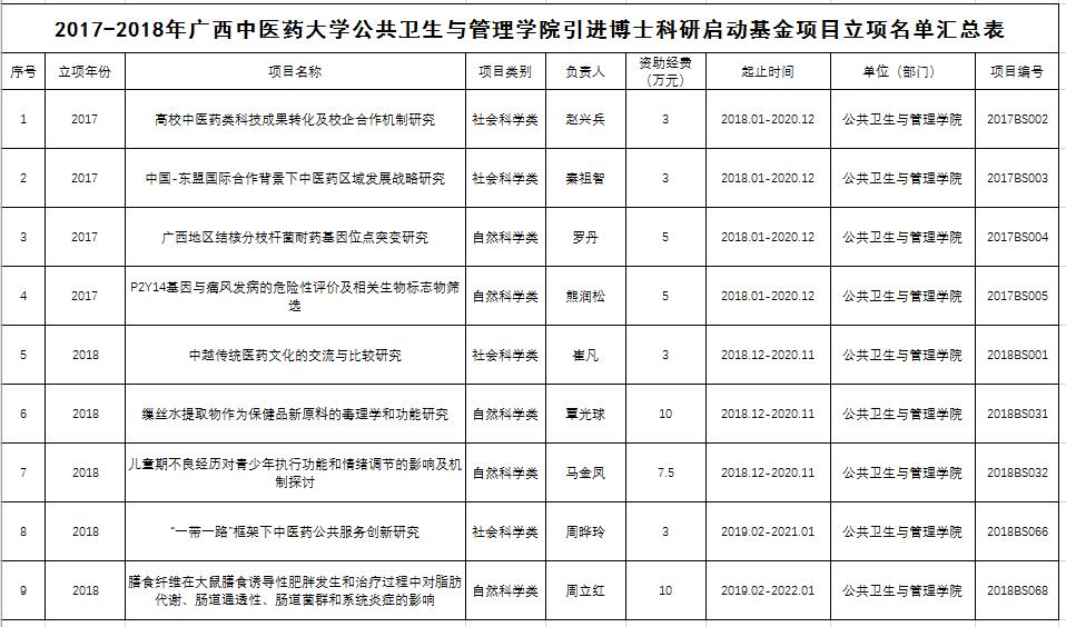 2017、2018年学校资助的全部博士科研启动基金项目,具体名单如下: