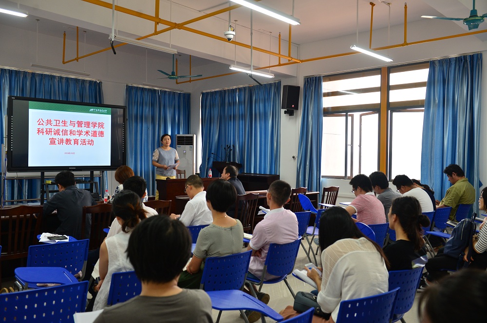 公共卫生与管理学院召开科研诚信和学术道德宣讲教育 发布时间:2018-10-10 10:15:12 浏览次数: 次 【字体:小 大】 2018年10月9日下午,公共卫生与管理学院在自诚楼A801组织召开了科研诚信和学术道德宣讲教育活动。活动由科研办主任韦俞伽主持,全体教职工参加了此次活动。 韦俞伽主任针对taptap点点体育教职工学术诚信承诺书进行了详细解读。董柏青院长特别强调各位老师一定要认真阅读承诺书内容,以严谨求实的态度进行学术研究,发扬实事求是的科研精神,认真履行科学研究的义务,严格恪守承诺,并相互监督。 分享到: 【打印正文】