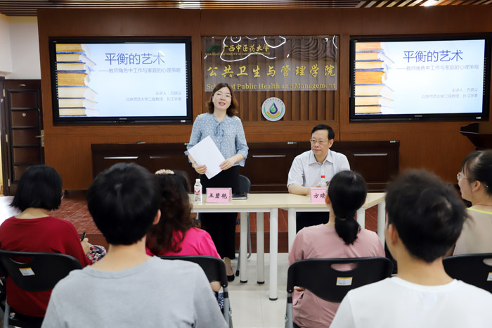 方晓义教授长期从事家庭研究与治疗;青少年成瘾行为;流动人口艾滋病预防干预与心理健康等方面的研究,并卓有建树,方晓义教授尤其擅长于家庭和婚姻治疗,不仅做了大量相关个案,还从1996年至今一直讲授家庭治疗课程。大学老师在日常工作中承担了大量的教学和科研工作,同时在家庭中又要扮演家庭成员的角色,工作和生活方面的巨大压力造成了许多老师心理行为方面的问题。方晓义用实际案例与到场师生分享了他在工作和生活中遇到的各种心理行为问题以及对治的方法。