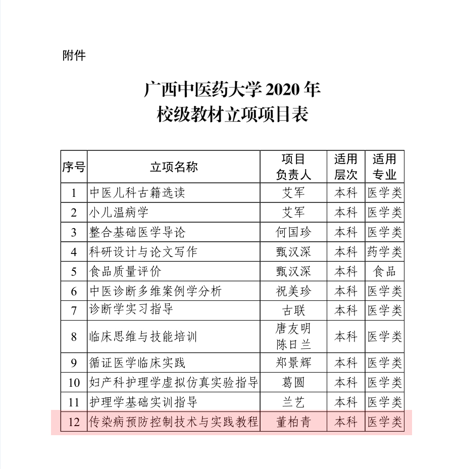 董柏青院长主编教材获得2020年taptap点点体育校级教材立项 发布时间:2020-12-05 11:35:06 浏览次数: 次 【字体:小 大】 近日,公共卫生与管理学院董柏青院长主编的教材《传染病预防控制技术与实践教程》获得2020年taptap点点体育校级教材立项。 分享到: 【打印正文】