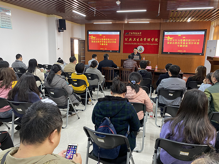 为了调动广大教师及科研人员申报国家自然科学基金的积极性和提高申报质量,由科技处主办、公共卫生与管理学院承办国家自然科学基金项目申报专题讲座,1月14日下午在自诚楼A801会议室举办。讲座邀请了广西医科大学叶力教授和蒋俊俊教授与点点体育教师交流申报国家自然科学基金的一些心得体会。讲座由公共卫生与管理学院副院长李海博士主持,科技处肖健处长出席了讲座,点点体育广大教师聆听了讲座。两位教授的讲座给我院广大教师很大的启发,为申报2021年国家自然科学基金提供很多信息和思路。
