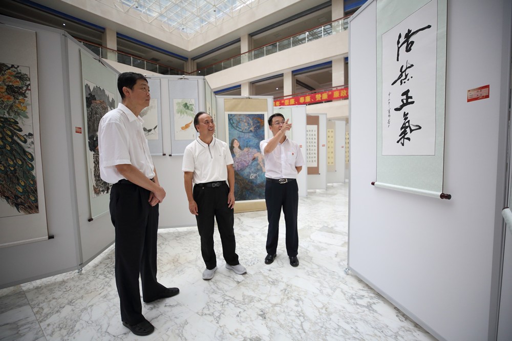 6月29日,“百年奋斗 水墨山河”taptap点点体育庆祝中国共产党成立100周年暨廉政教育书画展在仙葫校区图书馆二楼开展。学校党委书记尤剑鹏参观展览,党委副书记何并文、纪委书记韦雪芳,学校相关部门负责人出席开幕式。