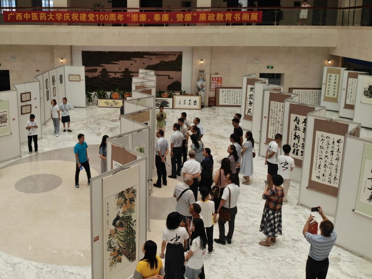 本次展览是在学校党史学习教育领导小组办公室领导下,由校宣传部、工会、学工处以及团委主办,教职工书画协会、大学生书画艺术协会以及我院传统文化与艺术教研室承办,旨在深入学习贯彻习近平新时代中国特色社会主义思想和党的十九大精神,认真落实习近平总书记关于文艺工作重要论述和考察广西重要讲话精神,隆重纪念党的100华诞,深入开展党史学习教育,讴歌建党以来的光辉业绩和伟大成就,激励全校师生员工热爱党、热爱祖国,热爱中医药,为中医药事业贡献自己的力量。