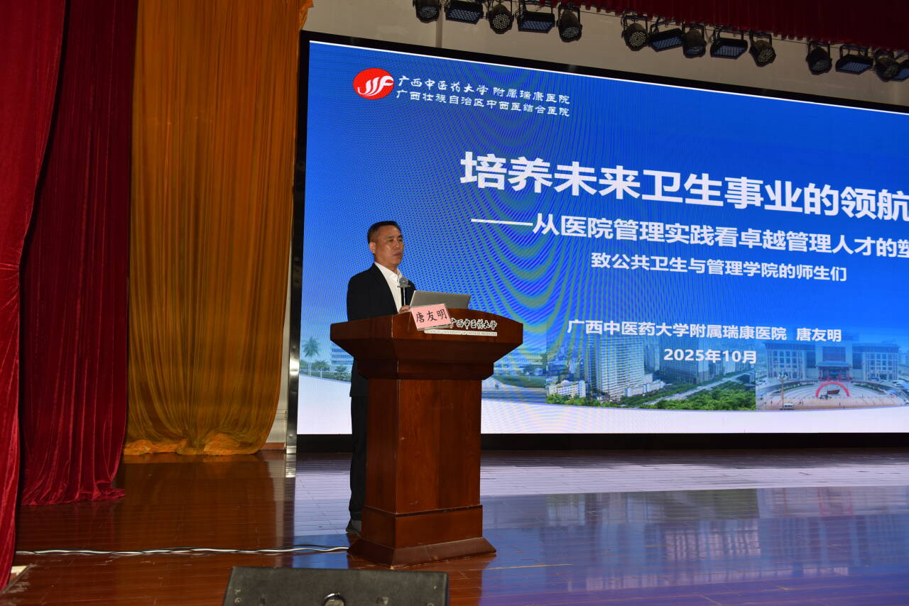 唐友明教授结合自身长期医院管理实践,分享了瑞康医院在中西医并重办院、顶层设计、文化塑造等方面的实践经验,让师生直观了解现代医院管理内涵与路径。他从管理者视角,分析新时代医院对公共卫生管理人才的能力需求,围绕相关政策要求与人才观,阐释了管理人才需具备的 “八个能力”“八个素质”,强调 “能写、会讲、敢做、善成” 的复合型人才是行业紧缺力量。