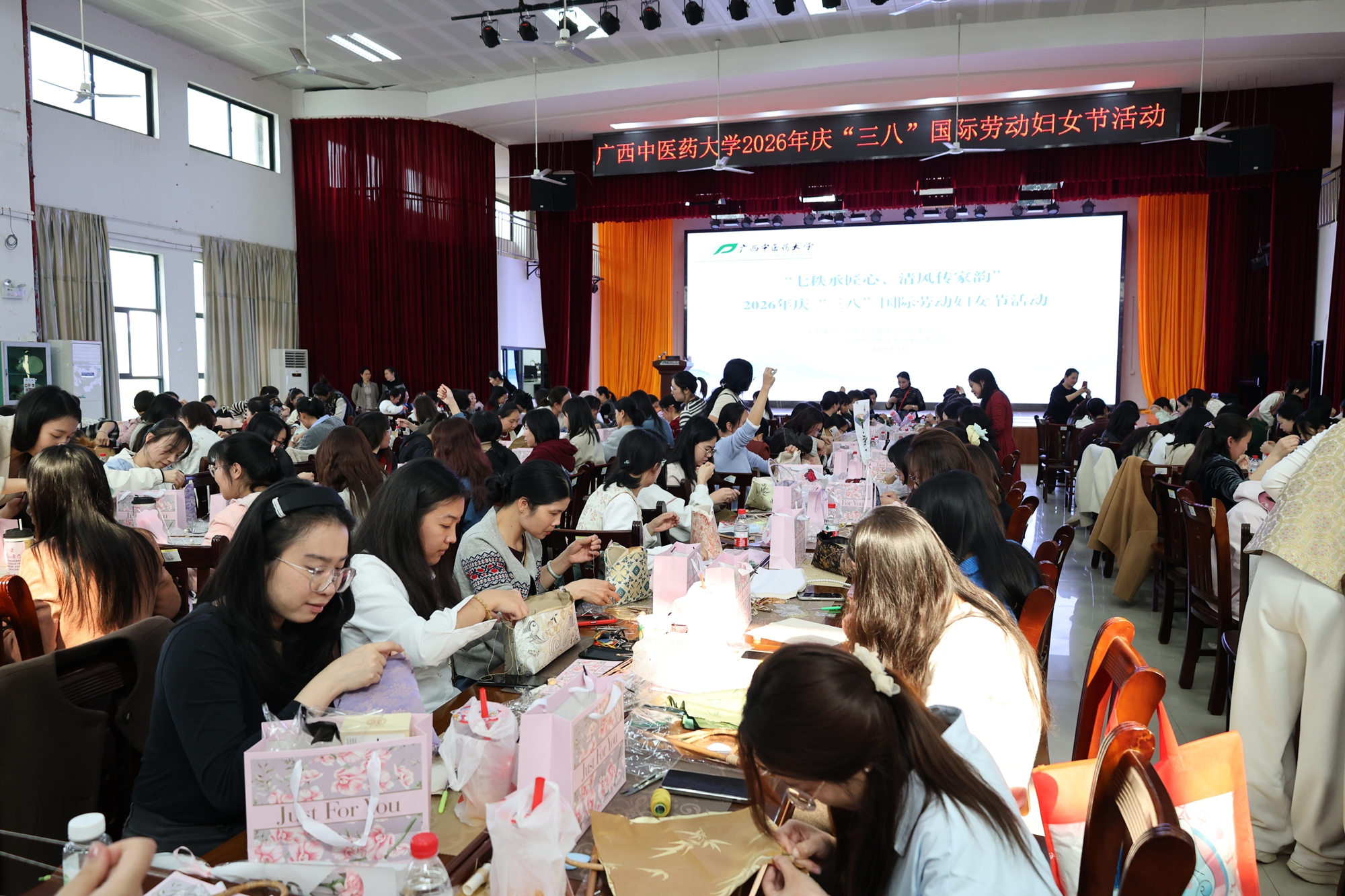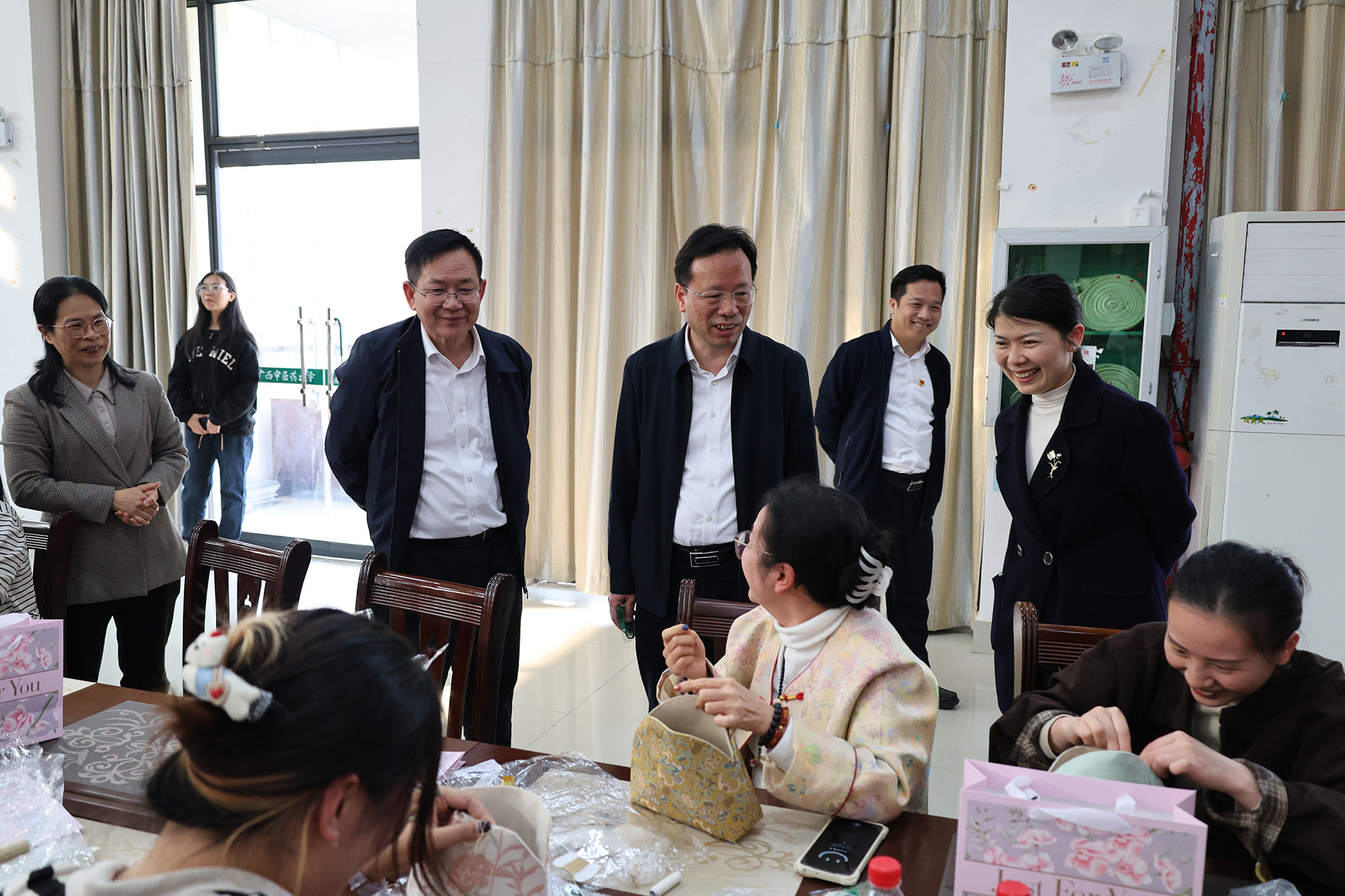 七秩承匠心,清风传佳韵。3月6日下午,点点体育2026年庆“三八”国际劳动妇女节之非遗手作活动在仙葫校区大学生活动中心小礼堂举行。学校党委书记莫锦荣,党委副书记、校长李雪斌来到活动现场,向全体女同胞致以节日祝福,传递学校的关怀与温暖。