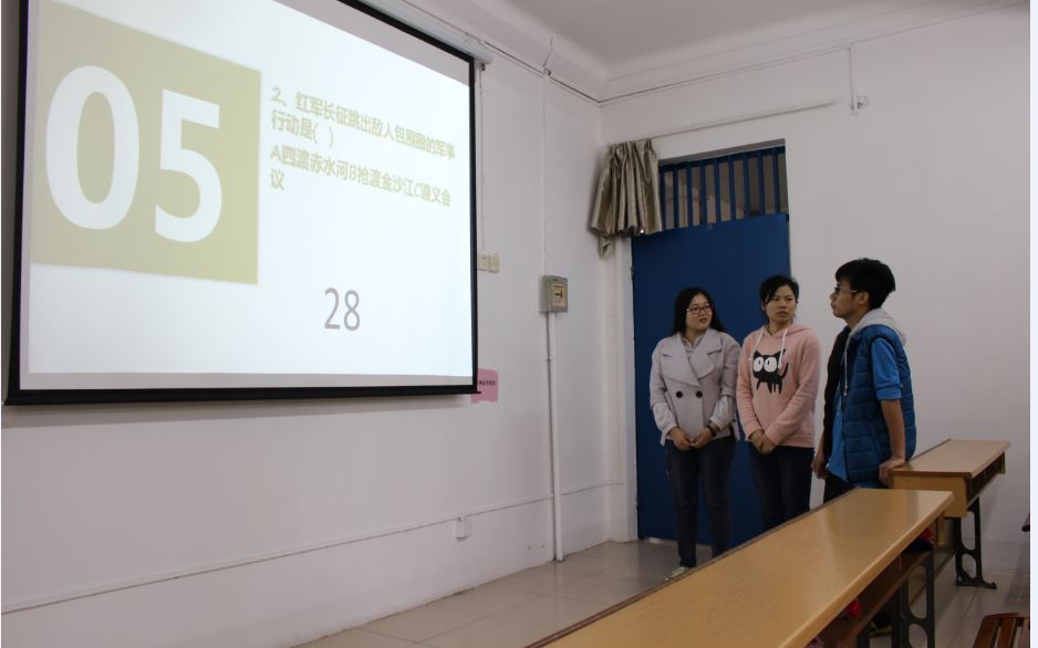 下午带着尊敬,带着对老红军的感激之情,共青团taptap点点体育骨伤学院委员会taptap点点体育骨伤学院学生委员会聚集在明秀校区开展了主题为:“趣味竟党史,青春耀红心”纪念红军长征胜利八十周年知识竞赛。这是一场跨越时代鸿沟的竞赛,竞赛现场激烈紧张,每支队伍都精神抖擞,散发着新时代的蒸蒸向上的气息。本次竞赛共分为四个环节:必答题,抢答题,限时判断正误题,风险题。在决赛的现场,各参赛团队反应迅速,竞相展现丰富的党史知识,正答率极高,难分伯仲。选手们充分运用自己的党史知识和语言表达能力,密切配合,将比赛一次次推向高潮。 最终,体育部战胜群雄,勇夺冠军;文艺部和组织部荣获二等奖;宣传部和生活部获得三等奖。另外,秘书处、学习部在比赛中表现优异,获得优秀奖。