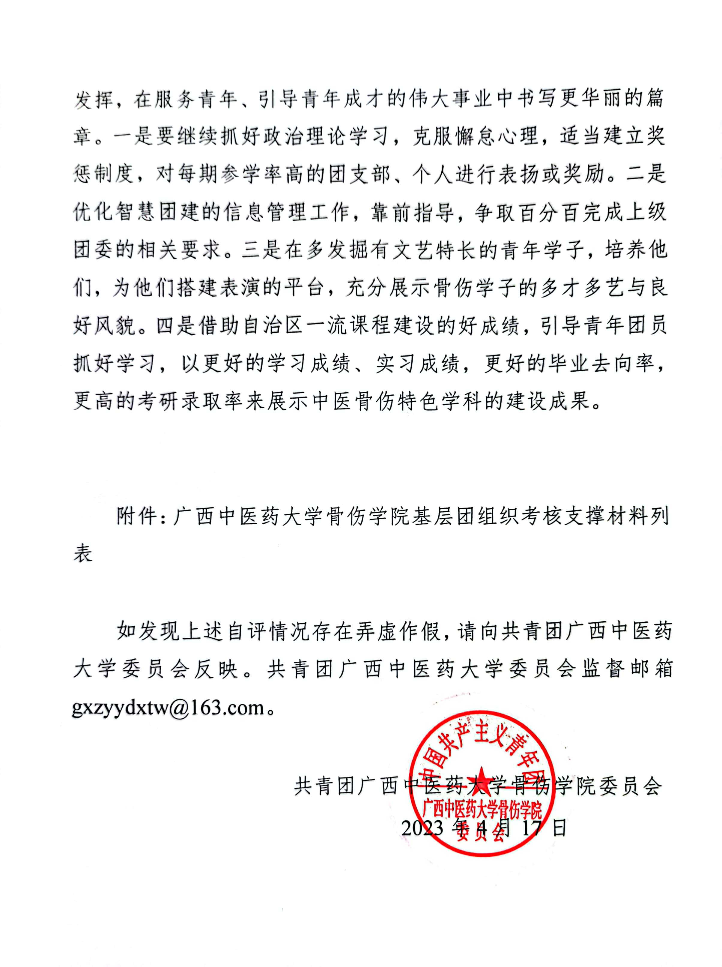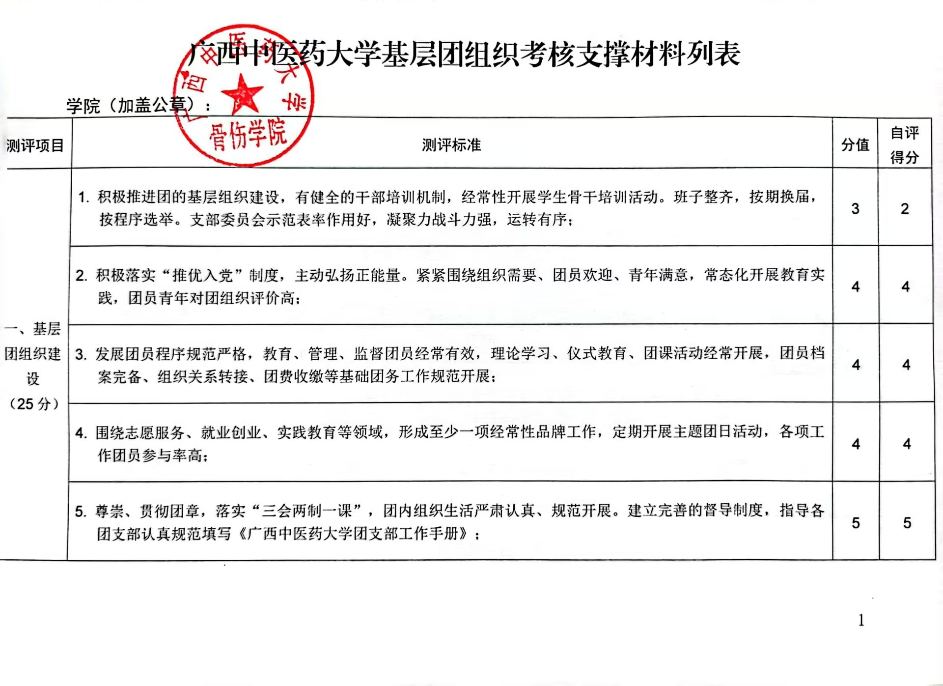 骨伤学院基层团组织工作目标管理考核自评报告