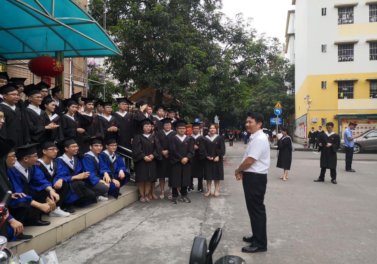 6月4日上午7:45分,天气晴朗,果树葱葱,明秀校区一片喜庆气氛,2019届毕业生今天与学校、学院领导老师拍毕业集体照,广大师生脸上荡漾着开心、幸福的笑容,校园里的一草一木,一房一瓦,此时此刻显得特别让人留恋。