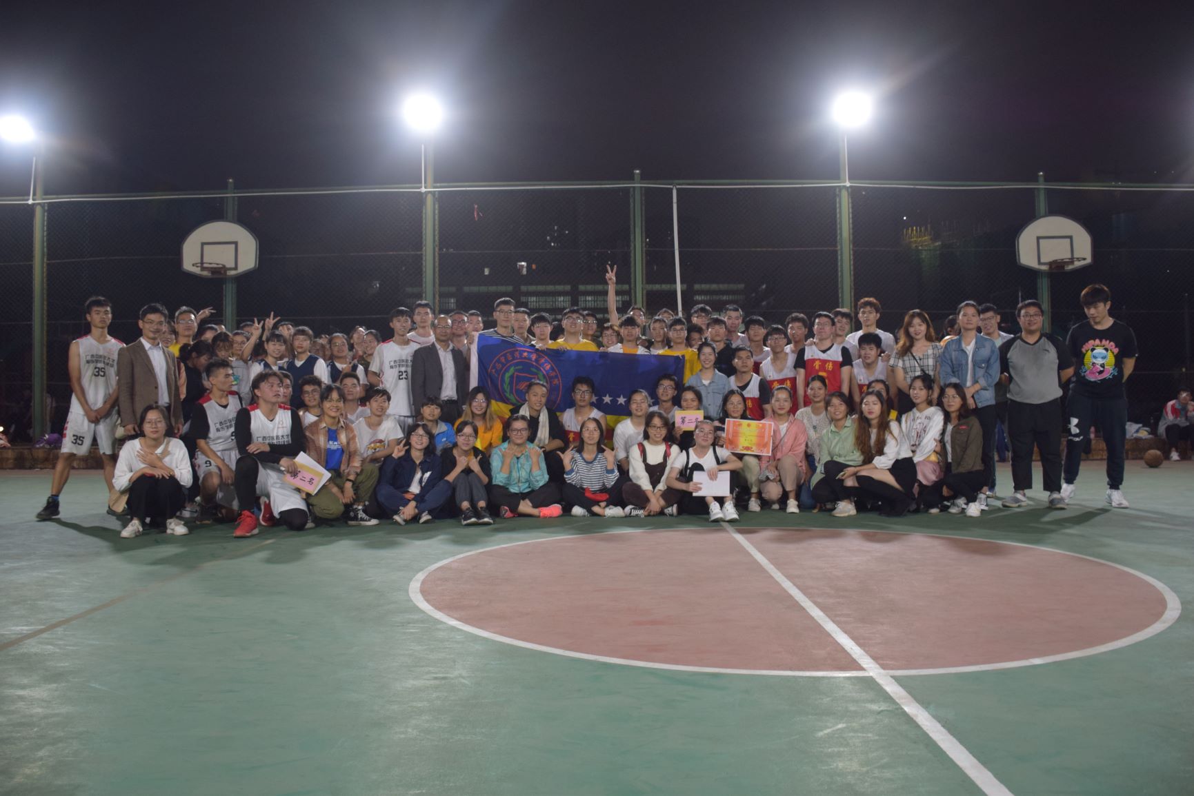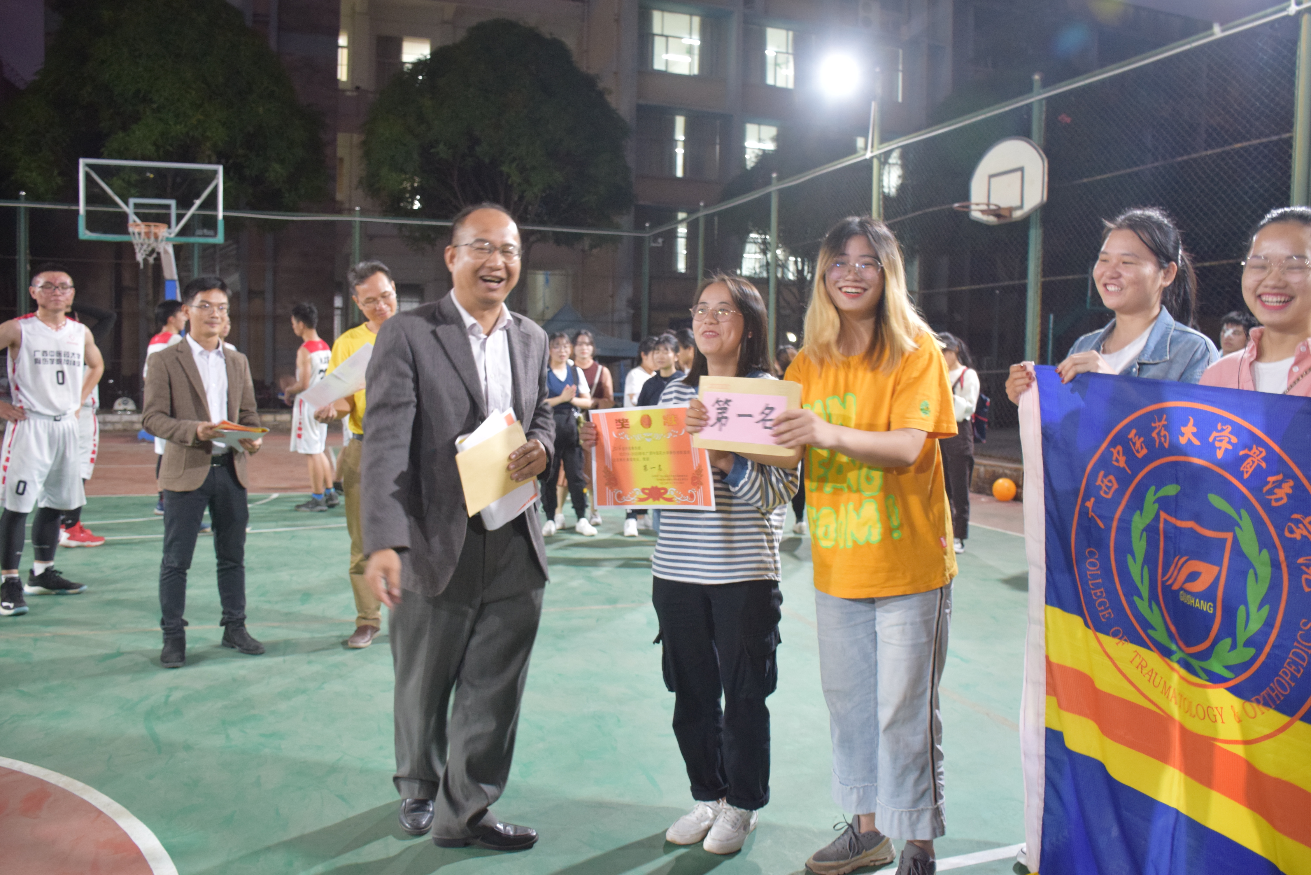 2019年11月25日,在骨伤学院院长周红海老师、团委书记温健老师、韦明老师指导下,骨伤学院16级与18级在明秀校区体育馆里进行了最后一场气排球和篮球友谊赛。
