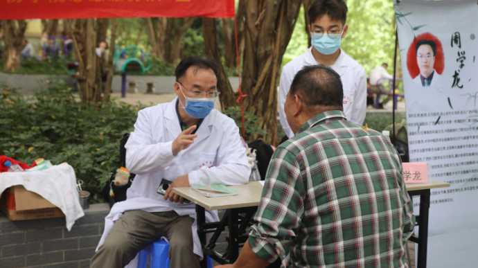 周学龙教授给居民做检查