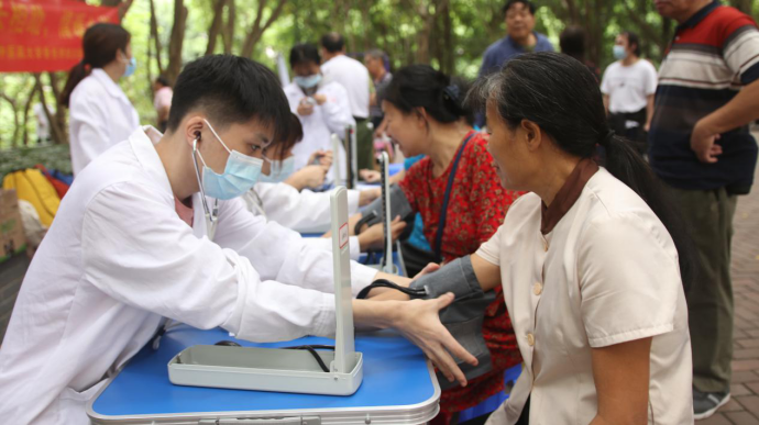 给社区居民测量血压