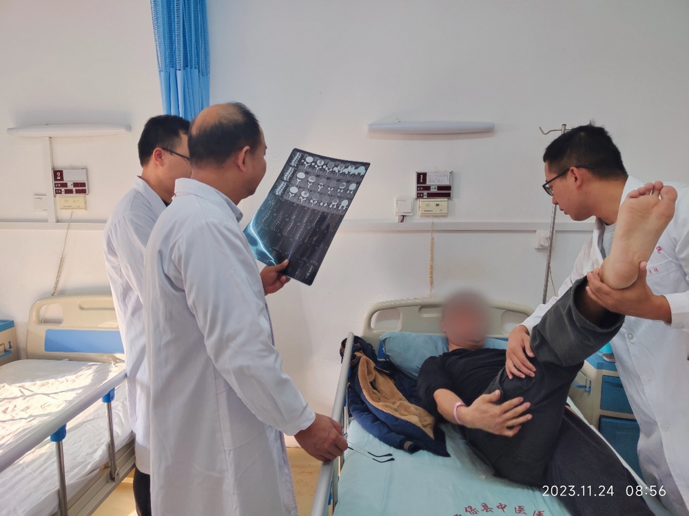 11月24日上午,周红海教授、曾平教授对在院的骨伤科病人进行深入详细的教学查房。在查房过程中,周红海教授、曾平教授认真听取主管医生汇报病历,并亲自进行更为细致的体格检查,针对不同病种的诊疗作出进一步的指导说明。在与病人及家属的交谈中,用切合实际的治疗手段解决病人的主要问题,针对科室治疗过程中存在的疑难问题一一进行解答,提出进一步可行的治疗方案。