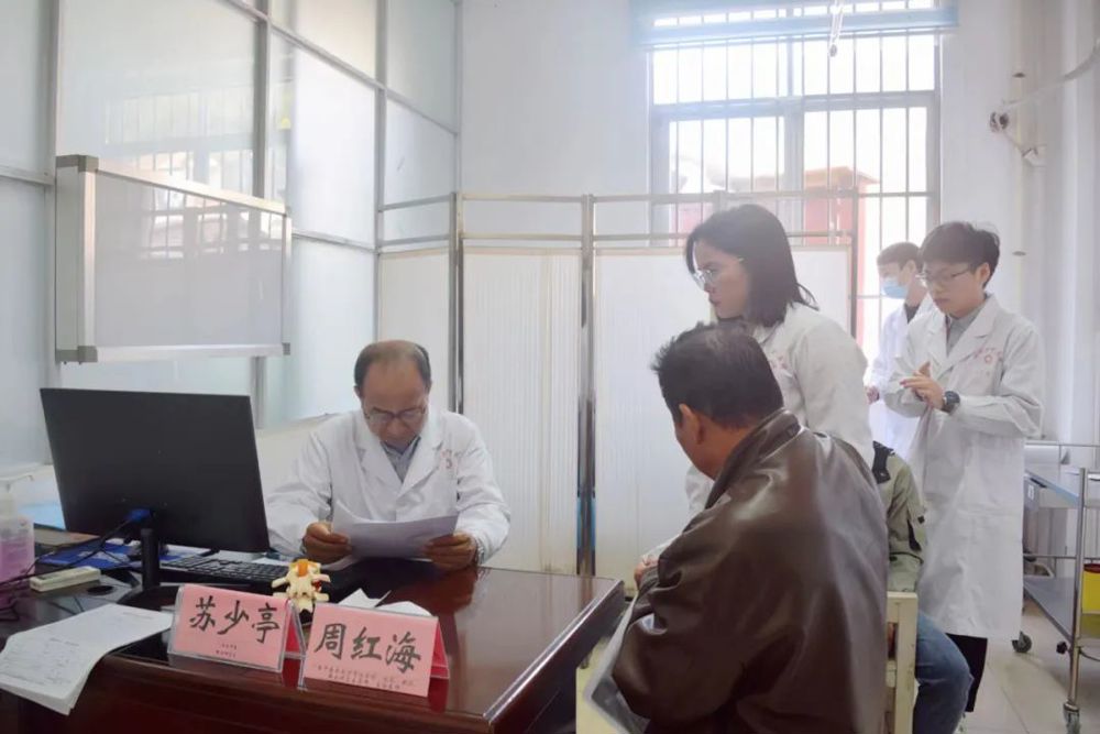 教学查房结束后,周红海教授、曾平教授在专家诊室开展免费义诊活动。义诊活动一经开始,慕名而来的群众络绎不绝。周红海教授及曾平教授为前来的病人进行耐心而细致的看诊,用通俗易懂的语言耐心讲解防病治病常识,对于骨科常见病、多发病给予合理的治疗建议及健康生活指导,并现场为一些病人进行手法、针灸治疗,效果立竿见影,群众连连称好。