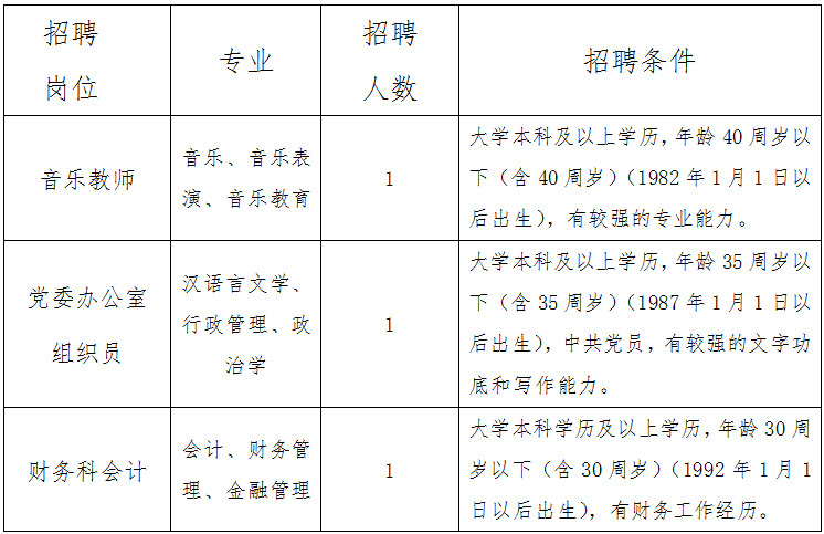 招聘人员必须是思想品德端正,拥护党的路线、方针、政策,严格遵守国家法律法规,热爱中等职业教育,并符合点点体育招聘所需的条件。详见下表: