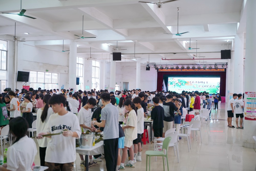 开幕式上,刘竑清校长强调举办本次活动的重要意义,要求同学们传承优秀传统文化,珍惜当下生活。随后,学生社团为同学们带来了丰富多彩的节目。刘竑清校长宣布包粽子比赛开始,泡米、清洗粽叶、包粽子、煮粽子,同学们相互配合、团结协作,师生一起包粽子、畅谈端午文化,活动现场其乐融融。