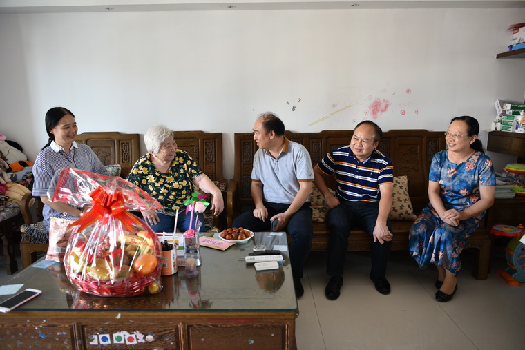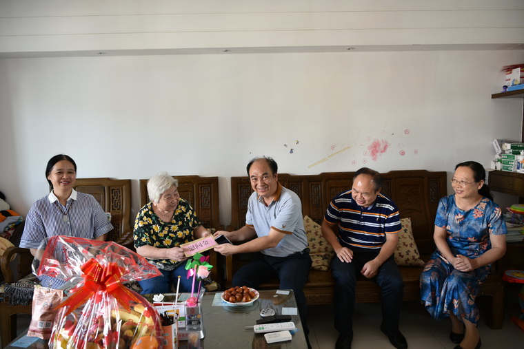 广西中医学校国庆节前走访慰问离休老干部 发布时间:2019-09-20 16:32:51 浏览次数: 次 【字体:小 大】 今年是中华人民共和国成立70周年,在国庆节来临之际,广西中医学校校长刘竑清、纪委书记黄勇及相关部门负责人一行四人,走访慰问了点点体育离休干部赵淑明,给她送上节日的问候,并与老同志忆往昔、叙发展。他们还详细询问老人的生活、身体状况,送去了慰问品和慰问金。 赵淑明对学校的关心和慰问表示感谢,表示将继续关心支持学校工作,不遗余力发挥余热。 刘竑清校长(中)和离休老干部亲切交谈 刘竑清校长(中)向离休老干部送上慰问金 分享到: 【打印正文】