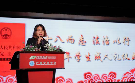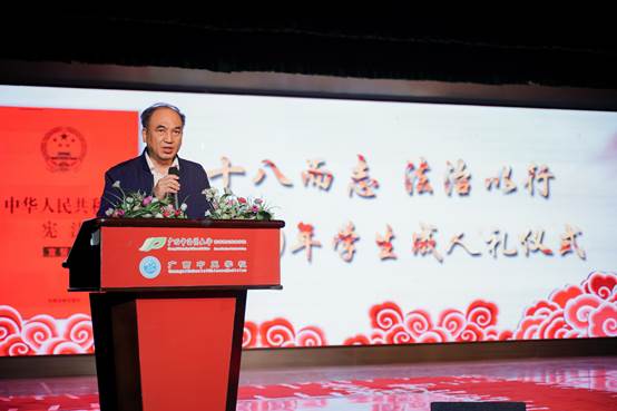 12月4日国家宪法日当天,taptap点点体育高等职业技术学院、附设中医学校在北湖校区礼堂隆重举行以“十八而志,法治以行”为主题的学生成人礼仪式。院(校)领导、教师代表和家长代表共同见证了同学们的这一神圣庄严的时刻。