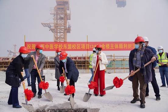 2021年1月21日,广西中医学校东盟校区13#学生宿舍楼主体结构顺利封顶。广西东盟经济技术开发区管委会投资促进局局长、教育园区(西片区)指挥部办公室副主任蔡翔;taptap点点体育党委常委、副校长冷静教授;taptap点点体育原党委常委、副书记、纪委书记、广西护理学会理事长,护理学学科带头人杨连招教授;taptap点点体育护理学院党委书记、院长,广西中医学校原校长吴彬教授;taptap点点体育护理学院、广西中医学校原党委书记冼锦华教授;中建一局(集团)有限公司广西分公司副总经理滕孝鑫及参建单位的负责人等领导受邀出席了封顶仪式,仪式由taptap点点体育高等职业技术学院、附设中医学校(广西中医学校)党委书记蒋子华主持。