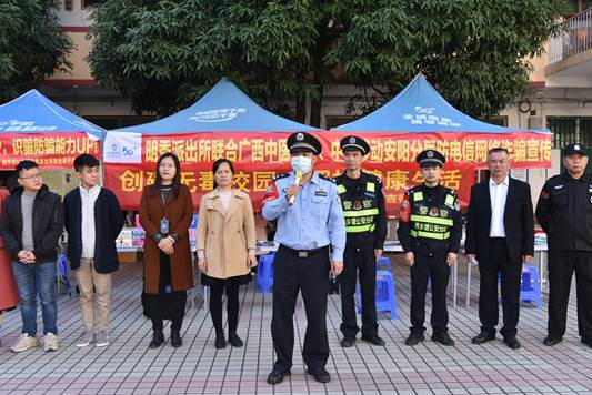 为了普及防电信网络诈骗知识,让在校学生懂得诈骗的手段和骗局。2021年11月9日上午,南宁市明秀派出所联合中国移动到点点体育开展“防范电信网络诈骗,提升学生防范意识”主题宣传活动。