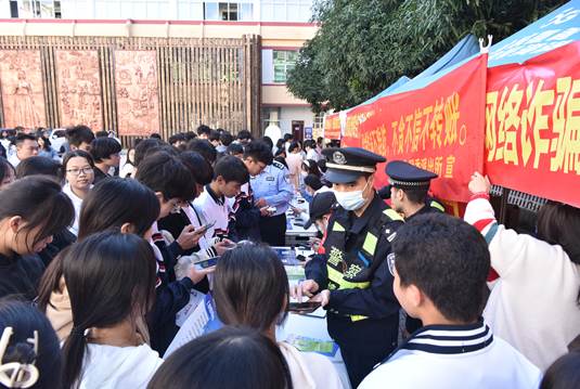 活动现场,派出所民警和中国移动工作人员通过发放宣传单、悬挂横幅、摆放展板等方式宣传诈骗手法、防骗知识,众多学生驻足观看,前往展台咨询、领取宣传资料。明秀派出所李宏贝副所长耐心向现场学生讲解电信诈骗、信用卡诈骗、合同诈骗、非法集资等案件的典型案例、作案手法、特点以及防范措施。同时提醒同学们防范电信诈骗做到:不轻信、不透露、不转账,提高自身的防范意识防止上当受骗,并告知学生如有疑问或发觉被骗一定要及时拨打110向警方咨询、报警,并迅速终止交易、保存涉案证明。最后,学生在工作人员的宣传建议下纷纷扫描二维码下载国家反诈中心APP,让同学们足不出户就能在自己的手机上了解最新的治安情况、预警信息、警务咨询以及安全防范宣传等服务。