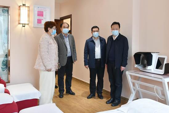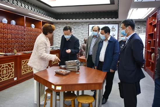 莫锦荣一行先后到附设中医学校东葛校区中医药文化养生药膳馆、康体保健中心、药学实训中心等地,现场了解学校概况、产教融合、校办产业等情况。