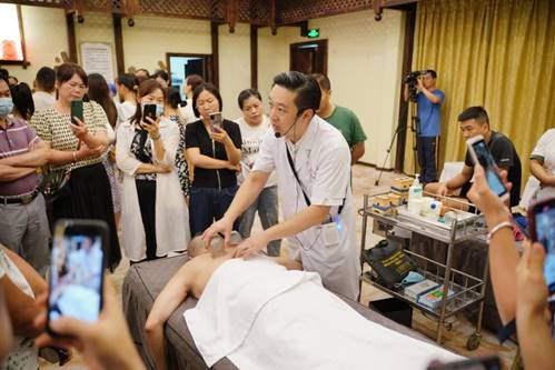 本期培训班邀请到了自治区中医药局规划产业处蒋志敏主任、taptap点点体育内经教研室主任蒋筱教授、taptap点点体育第一附属医院推拿科副主任杨宇医师和康复医学科主任陈广辉医师、广西金秀瑶医医院副院长罗秋香医师、桂林中西医结合医院赵东梅主任等专家为学员授课。各位授课专家从中医药壮瑶医药政策解读,中医基础理论(体质辨识)、中医药膳食疗养生、中药的性能(四气五味)、瑶医药康养特色优势及庞桶药浴疗法、中医推拿养生常用手法、中医运动养生学-华佗五禽戏等为主题做专题授课。为让学员们更好地掌握中医养生保健技术,实操课程采取分组进行,由点点体育理论知识扎实,技术水平高超的教师进行带教,逐一进行指导,使学员能尽快掌握基本的保健推拿手法、刮痧、艾灸、拔罐等技术。