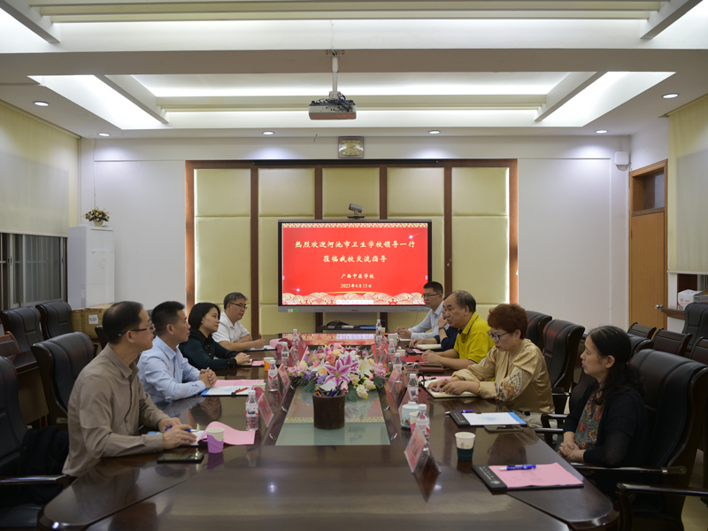 座谈会上,刘竑清代表学校党政领导对河池市卫生学校领导一行的来访表示热烈欢迎,并就学校办学情况及特点做了介绍。双方围绕实训室的管理模式及建设、实习生的管理措施、招生与就业工作和星级学校评定等方面进行了深入交流。