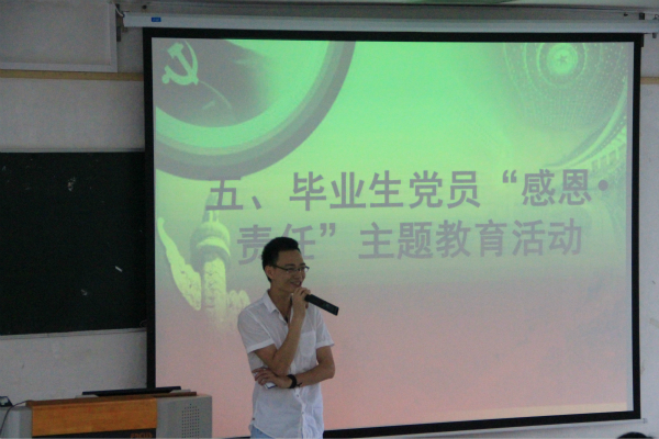 高职院2015年预备党员转正大会暨毕业生党员“感恩•责任”主题教育活动于6月18日在明秀校区西梯二教室圆满召开结束。高职院党总支书记、院长、高职处处长邓远美,高职院党总支副书记、副院长、高职处副处长周琦,高职院全体辅导员老师、学生党员及各班入党积极分子代表一同参加了大会。