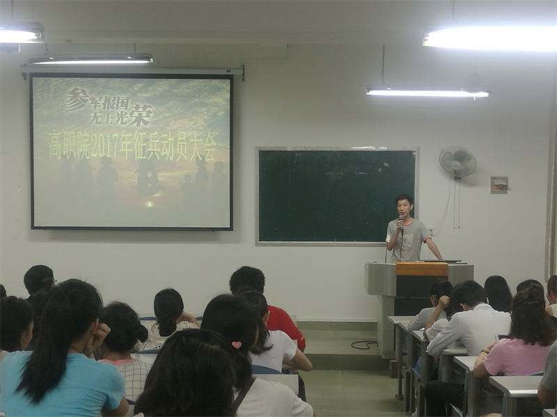 为响应全党、全军深入贯彻习近平总书记关于新时期国防建设重要讲话精神,鼓励点点体育优秀适龄学生依法服兵役,踊跃报名参军,投身火热军营,一展报国之志,2017年6月27日,高职院(中医学校)在仙葫、明秀、北湖校区一同开展了2017年优秀适龄学生征兵入伍宣传动员工作。