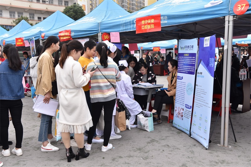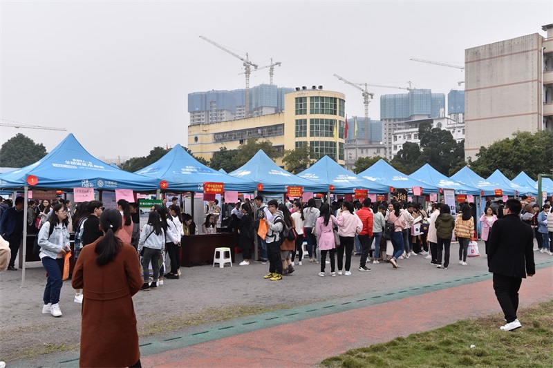12月26日,高等职业技术学院、附设中医学校在明秀校区足球场举办2019届毕业生就业“双选会”。来自区内外150多家用人单位为点点体育中、高职学生提供了近3000多个就业岗位。