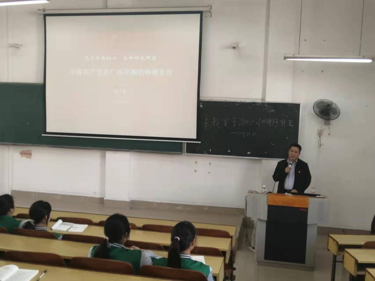 学校学工部叶勇玲部长,高职院蒋子华书记、刘武副书记分别为学生授课。授课老师们从中国共产党史、党在广西的奋斗历程、共产党人的特质等方面通过理论教学、案例教学、视频教学多种形式给新生们上了一堂很好的党史学习课程,向学生们诠释了“中国共产党为什么能”的重大历史问题。通过党史学习,学生对中国共产党建党百年的历史有了更详细的了解,坚定了永远跟党走的决心,在他们身上也注入了红色基因。